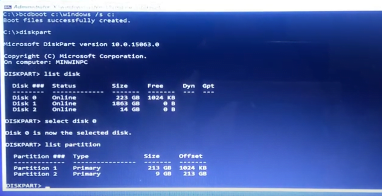 list partitionand press Enter to see all partitions on the selected disk. - Select Partition: Select the partition where Windows is installed by typing